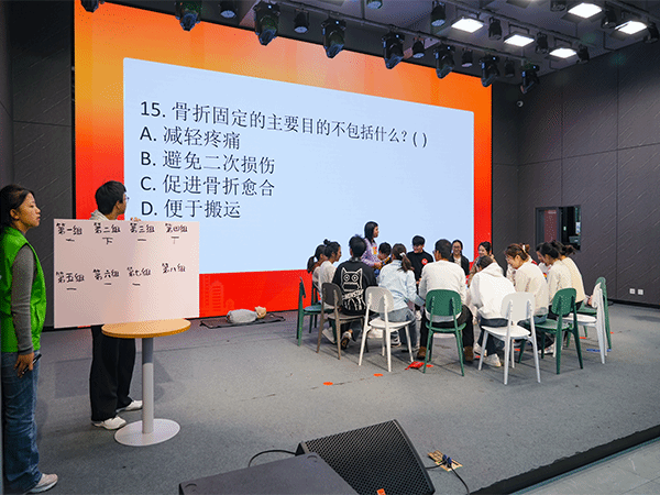 大賽設(shè)置筆試、理論知識搶答和實操三個環(huán)節(jié),56組112名選手在知識搶答環(huán)節(jié)反應(yīng)敏捷,在實操環(huán)節(jié)動作規(guī)范、沉著有序,遵循了“時間就是生命”的急救理念。