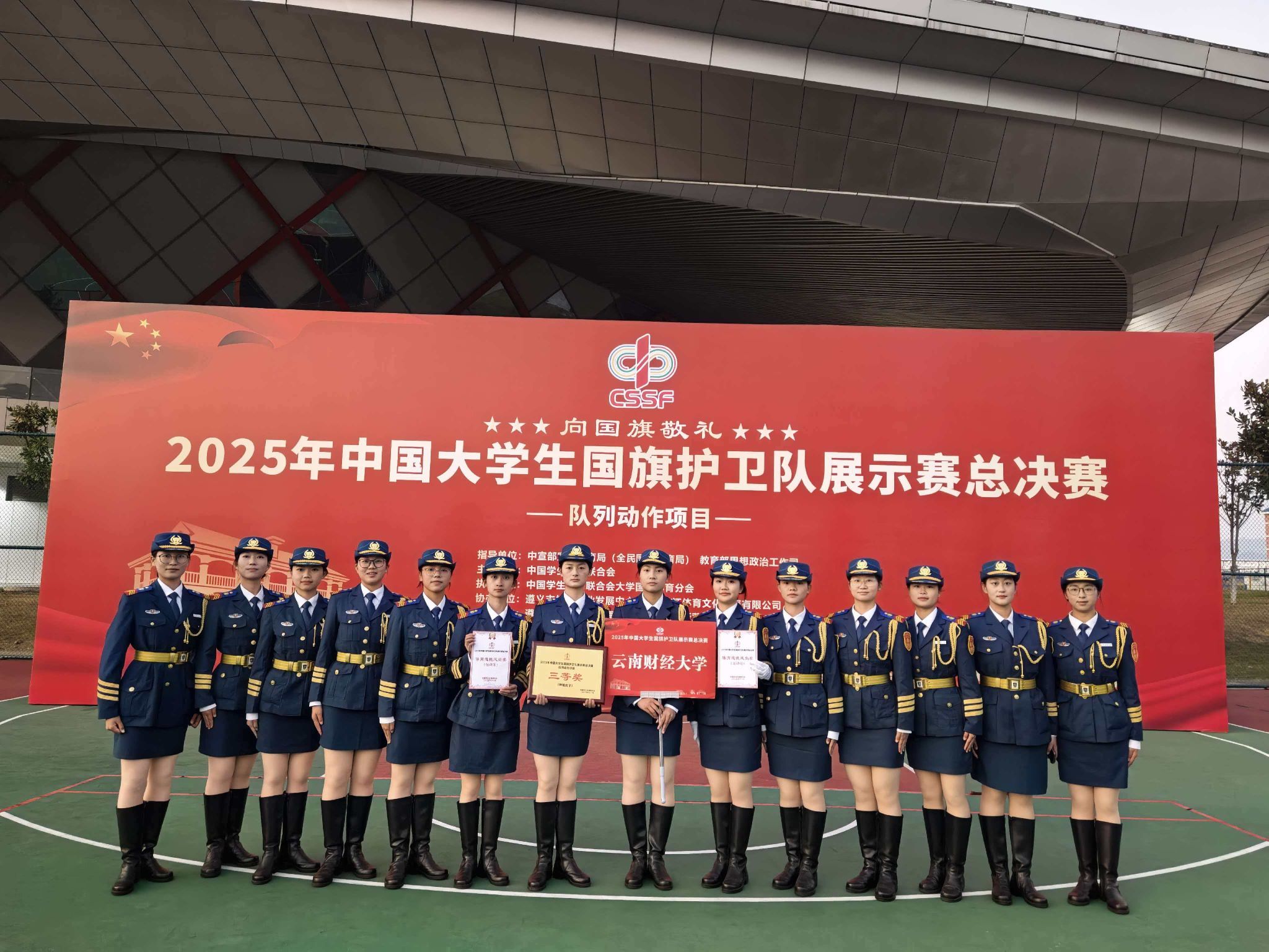 11月28日,2025年中國大學生國旗護衛隊展示賽(總決賽)在貴州遵義落幕。我校強軍社國旗護衛隊在女子甲組隊列動作展示項目中榮獲三等獎。