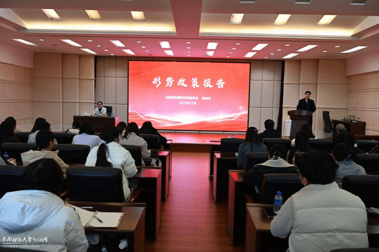 12月12日上午,云南省發展和改革委員會黨組成員、副主任郭金華應邀為我校師生作形勢政策專題報告。報告會由校黨委委員、副校長李正彪主持。