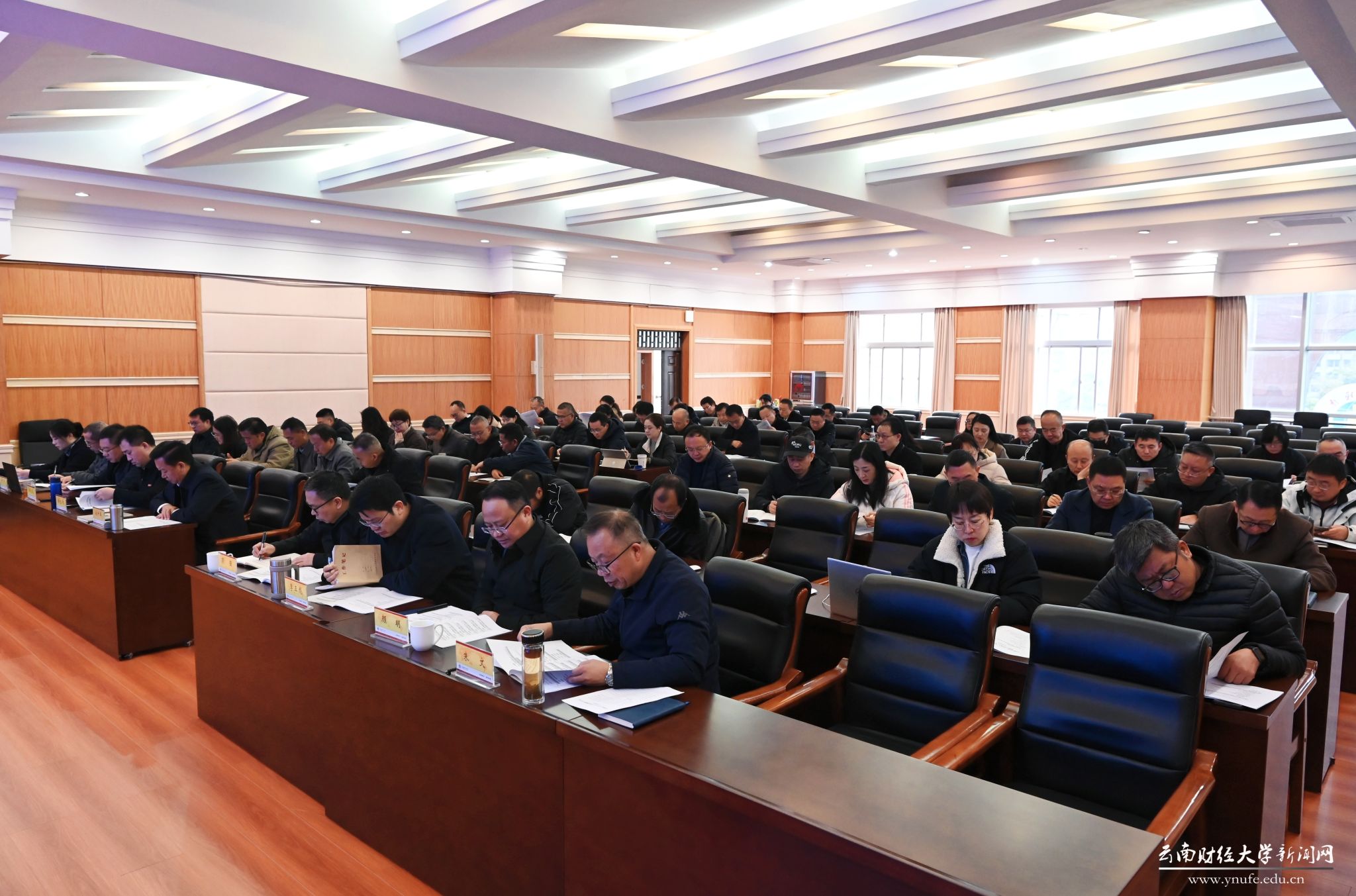 全體校領導、黨委委員,職能、教輔、后勤、資產主要負責人,各學院黨政主要負責人,各科研院所(中心)主要負責人參加會議。