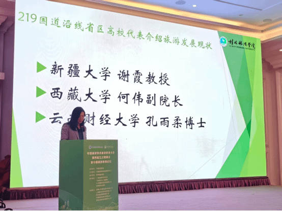 學院教師孔雨柔在平行論壇作《219國道云南段旅游發展現狀與挑戰》專題發言,結合實地調研數據分析了該路段在文旅融合、基礎設施和生態保護等方面的成果,提出通過數字化工具優化旅游體驗的建議。