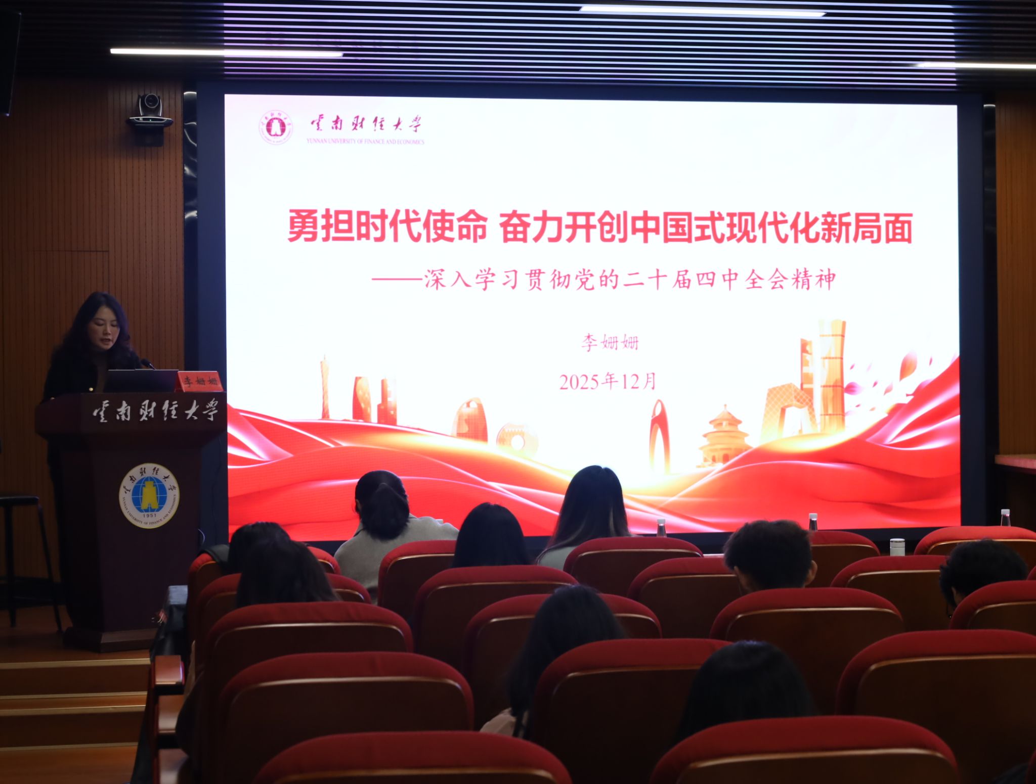 李姍姍緊密結合習近平總書記在黨的二十屆四中全會上的重要講話和《中共中央關于制定國民經濟和社會發展第十五個五年規劃的建議》從準確領會把握全會召開的重大意義、“十五五”規劃的重要作用、“十五五”時期發展的指導方針和主要目標任務等方面進行了系統宣講和深入闡釋。她結合新時代青年使命,對傳藝學子提出期望:要堅定理想信念,用黨的創新理論武裝頭腦;要珍惜韶華、錘煉本領、拓展視野、修養品德;要將專業知識與國家戰略緊密結合,積極投身鄉村振興、文化傳承等實踐,以奮斗姿態為中國式現代化貢獻青春力量。