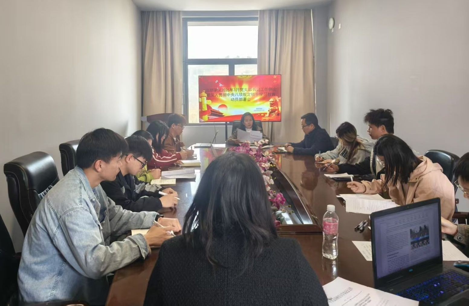 會議要求,學(xué)院各黨支部和師生黨員要迅速行動起來,切實(shí)把學(xué)習(xí)教育組織好、開展好,同步推進(jìn)習(xí)近平總書記考察云南重要講話精神的學(xué)習(xí)宣傳貫徹工作,高標(biāo)準(zhǔn)高質(zhì)量開展學(xué)習(xí)教育,堅(jiān)定不移貫徹中央八項(xiàng)規(guī)定及其實(shí)施細(xì)則精神,以優(yōu)良作風(fēng)推進(jìn)學(xué)校、學(xué)院高質(zhì)量發(fā)展,圓滿完成各項(xiàng)任務(wù)。