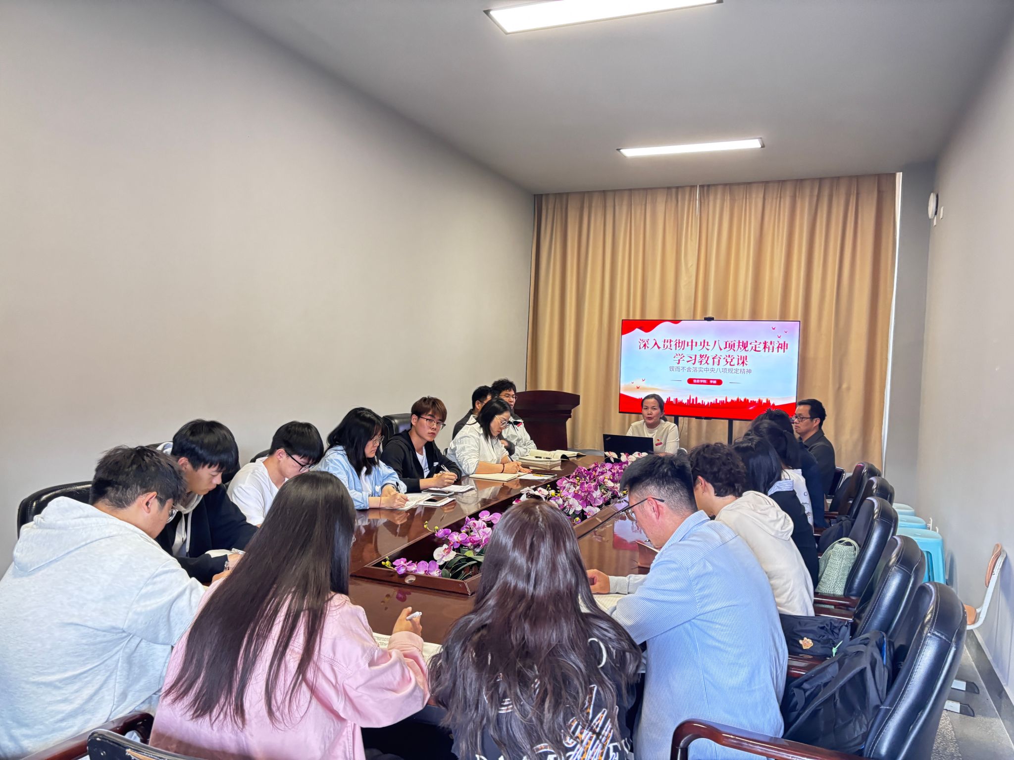 4月18日中午,信息學(xué)院黨委開展深入貫徹中央八項(xiàng)規(guī)定精神學(xué)習(xí)教育專題讀書班暨專題黨課,學(xué)院黨委書記李娟主講,院屬5個(gè)支部全體支委及部分入黨積極分子代表參加學(xué)習(xí)。