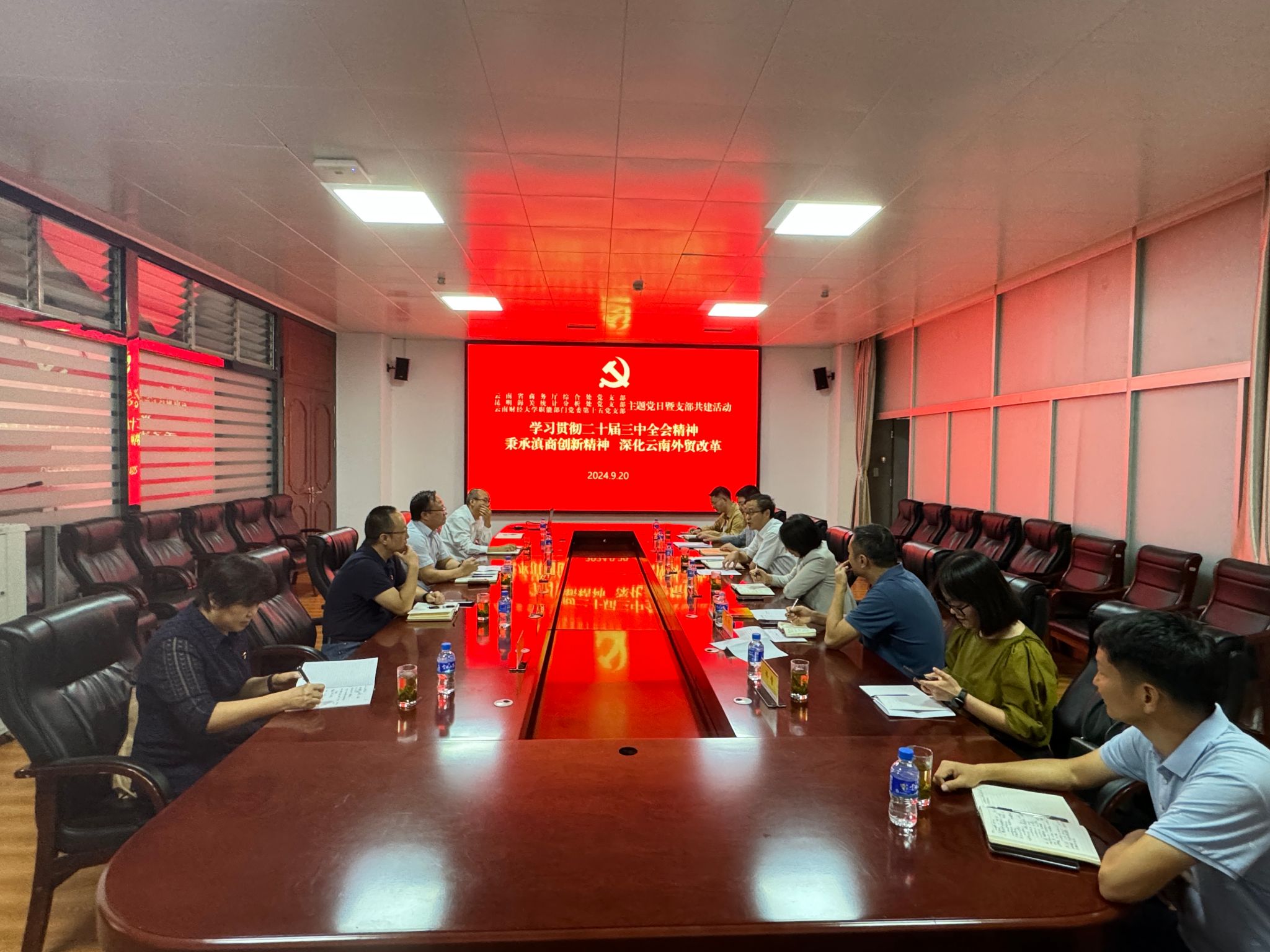 三個支部的負責同志先后發言,深刻闡述了學習貫徹黨的二十屆三中全會精神的重大意義,強調了云南作為面向南亞東南亞的輻射中心,其外貿發展對于國家對外開放大局的重要意義,號召全體黨員干部要深刻領會會議精神,把握時代脈搏,結合云南的優勢特色,以更加飽滿的熱情和堅定的信念,投身到云南外貿改革發展的實踐中。
