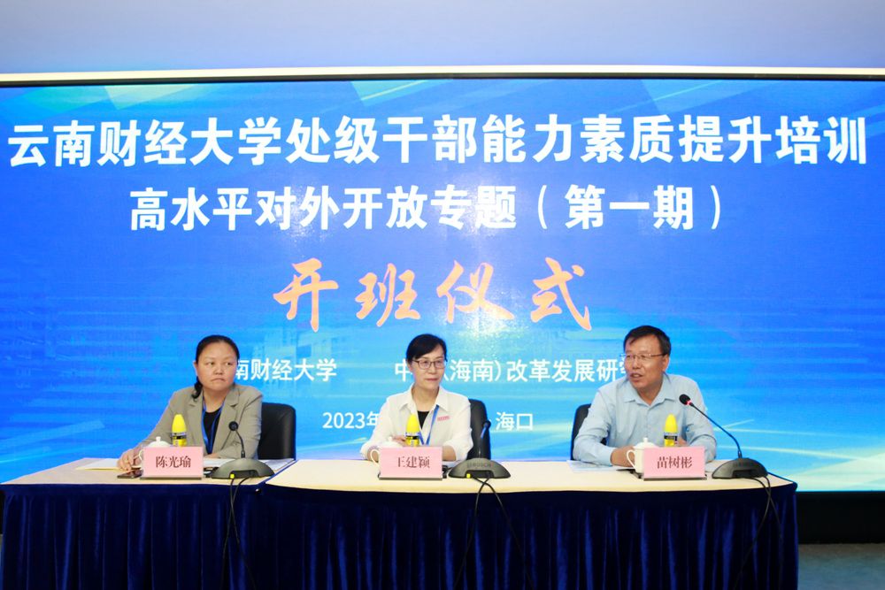 10月23日,云南財經大學處級干部能力素質提升培訓高水平對外開放專題(第一期)的學員抵達中國(海南)改革發展研究院(以下簡稱“中改院”),中改院院長遲福林向學員們闡述了中改院近期的研究重點,對學校給予中改院的信任支持表示感謝,期待雙方繼續加強合作、深化交流,為服務國家戰略和區域經濟社會發展貢獻更多力量。24日,培訓班開班儀式在中改院國際學術交流中心舉行。校黨委書記王建穎作開班動員講話,校黨委委員、副校長余怒濤、李正彪,中改院機關黨委書記苗樹彬、學術網絡與教育管理辦公室主任黃東暉出席開班儀式。我校黨委副書記陳光瑜主持儀式。