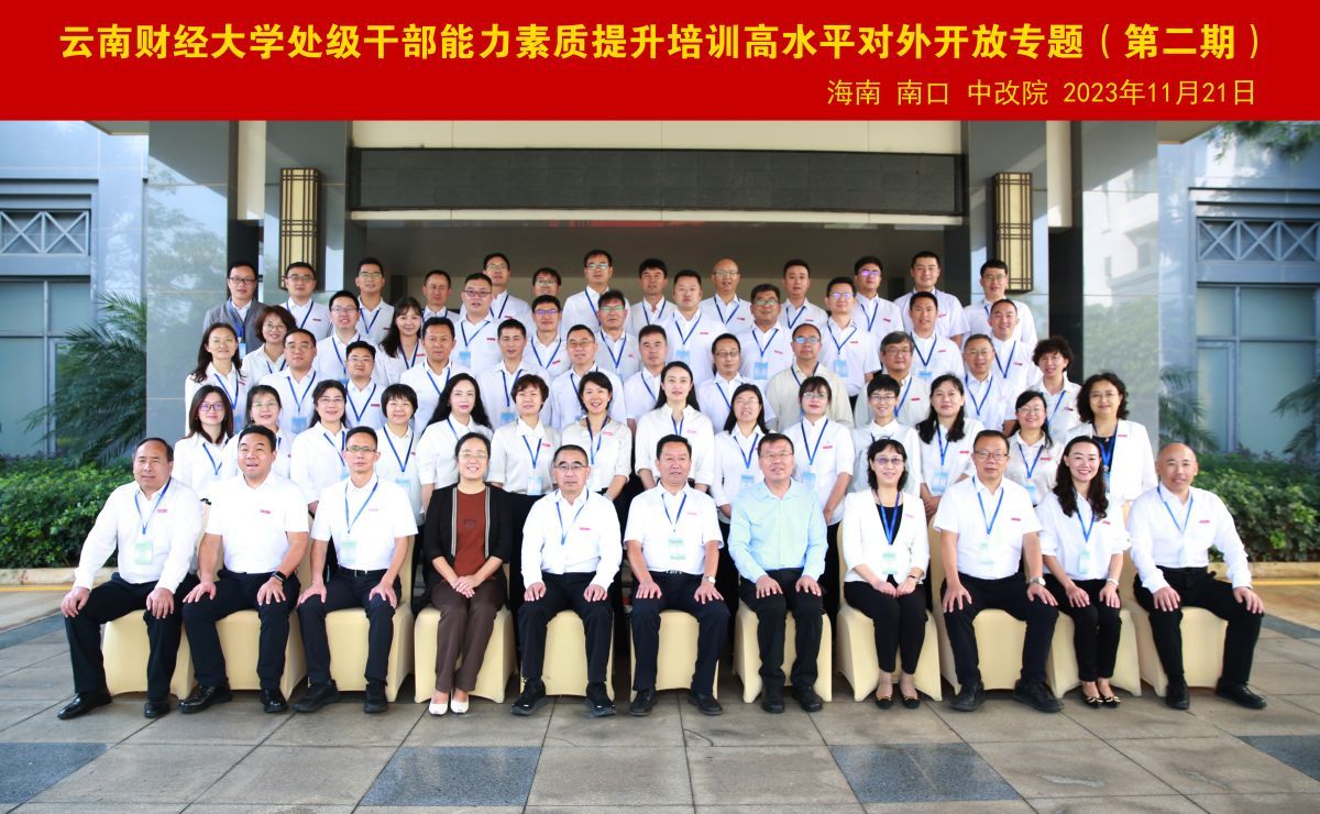 為貫徹落實習近平總書記對云南工作重要指示批示精神及中共云南省委提出的“3815”戰略發展目標,更好地落實學校“1186”戰略任務,11月21日—25日,由中國(海南)改革發展研究院(以下簡稱“中改院”)與云南財經大學合作舉辦的“云南財經大學處級干部能力素質提升培訓高水平對外開放專題(第二期)”在中改院國際學術交流中心舉行。云南財經大學黨委副書記施仲軍,校黨委委員、副校長胡海彥、曠錦云和56名學員參加培訓。